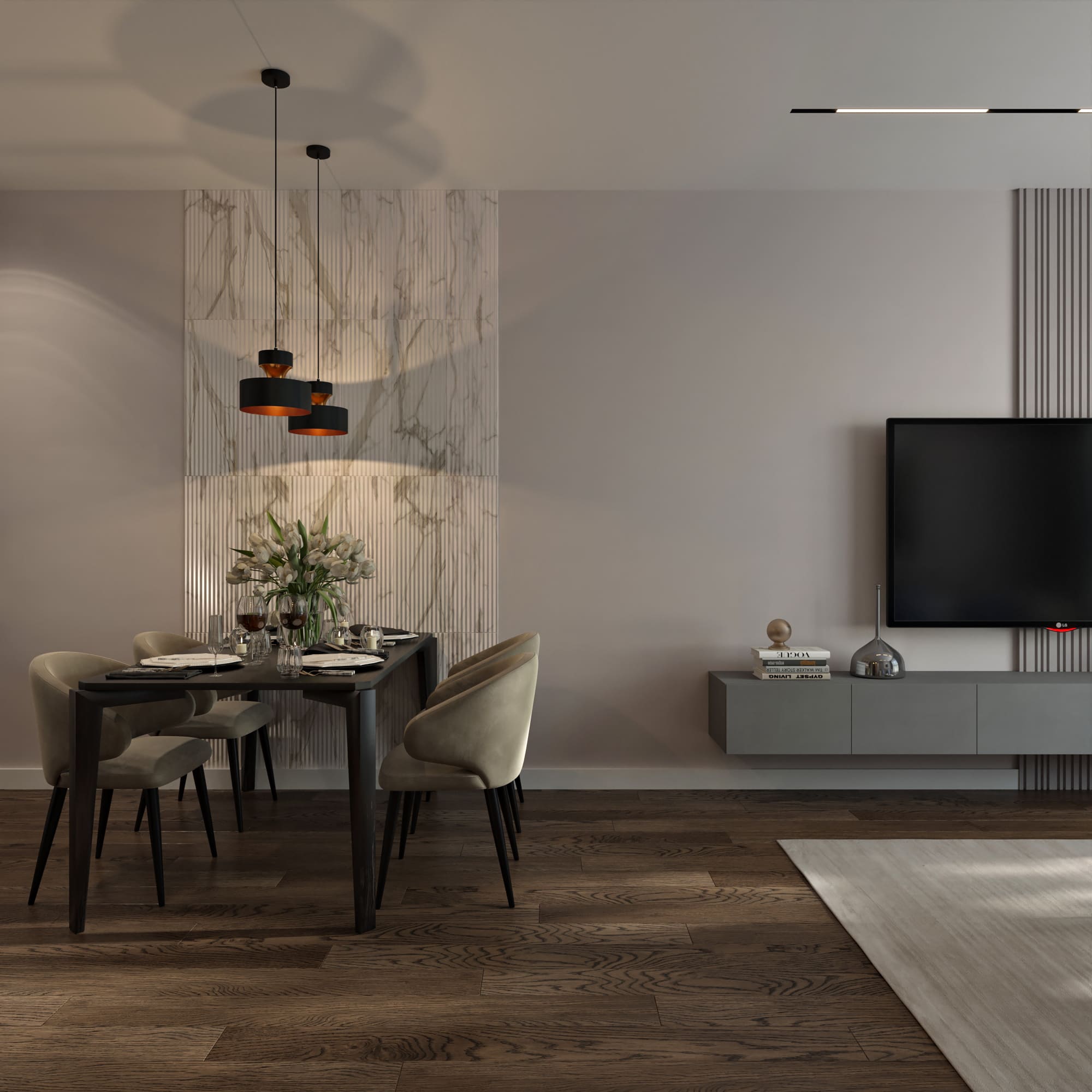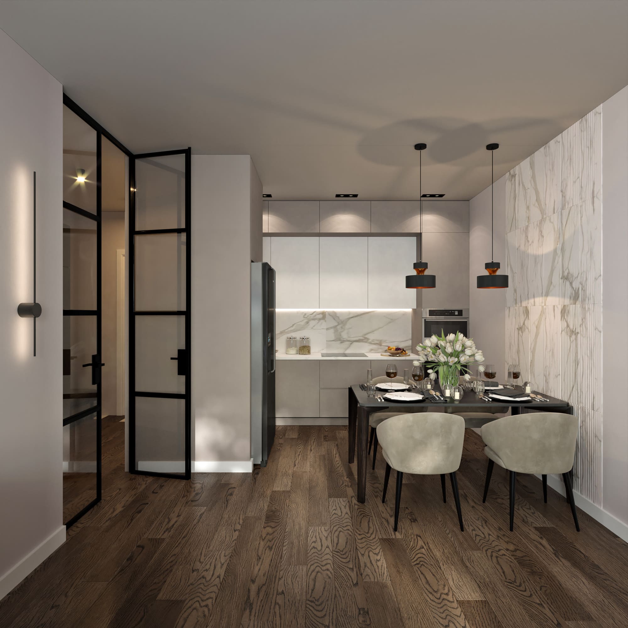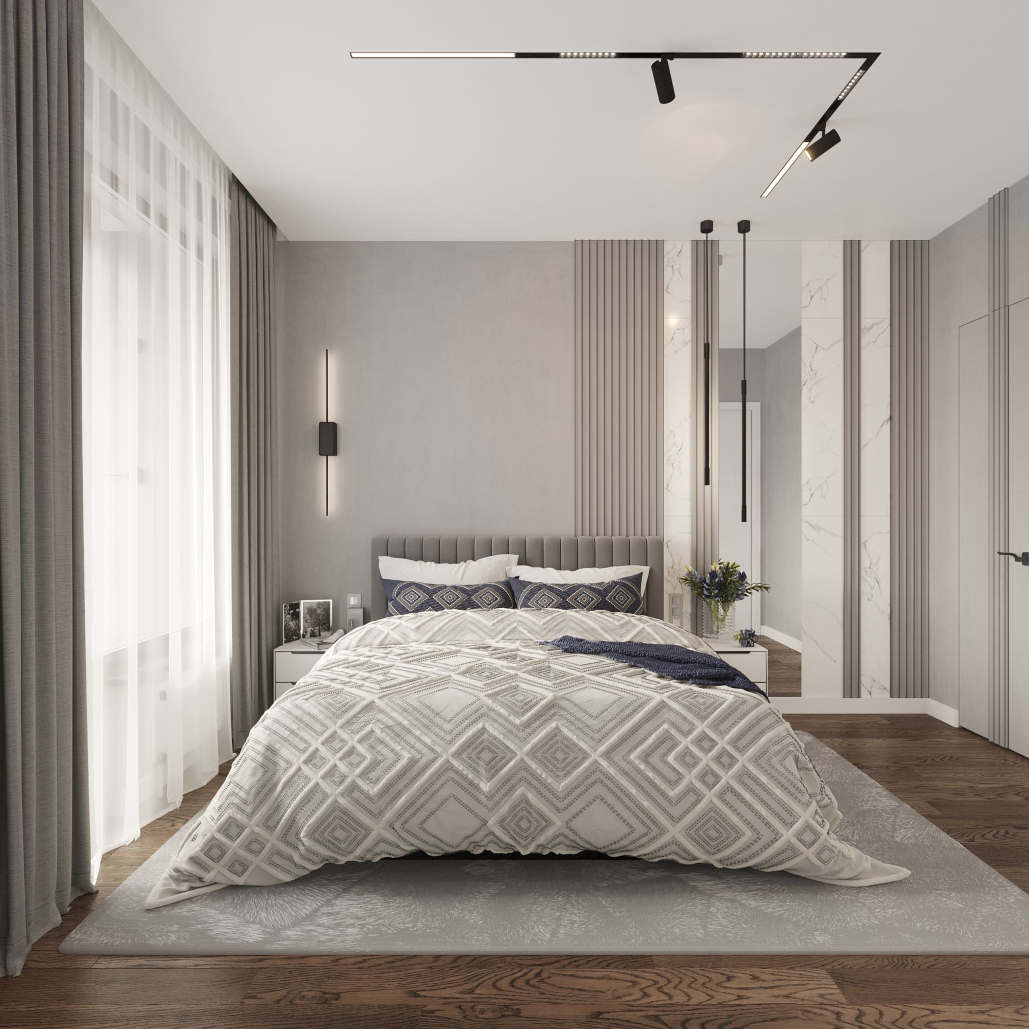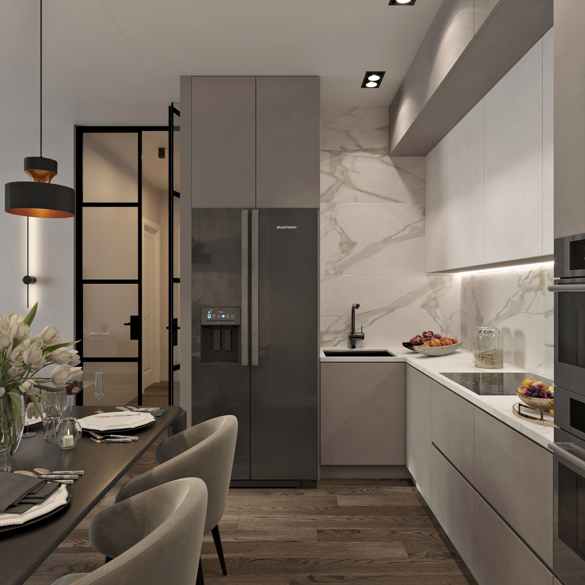 Квартира 66 м2 в серых тонах для молодой девушки ЖК «Савин Хаус»
