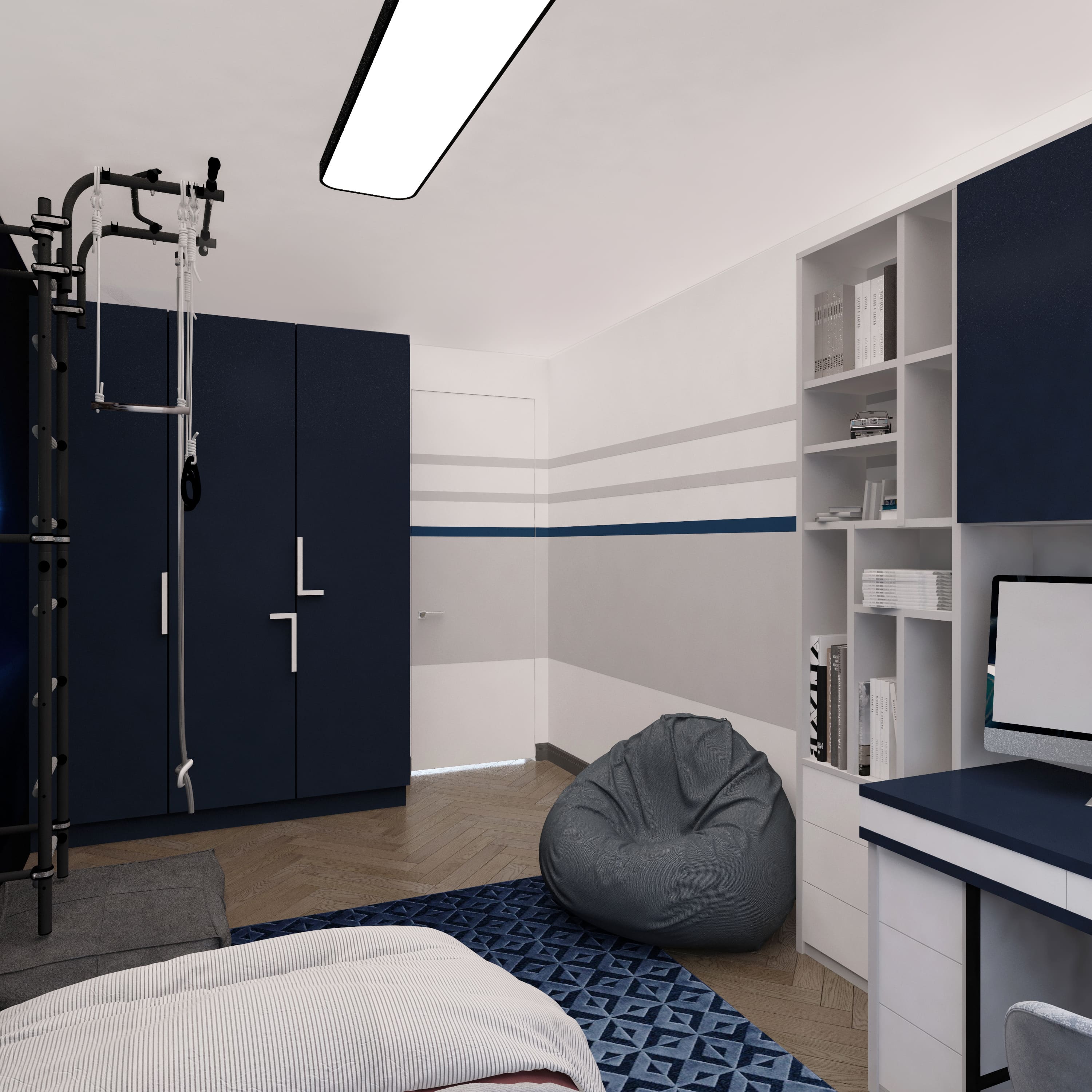 Квартира 88 м2 в ЖК «Светлая Долина» для семьи с одним ребенком Стиль: современный