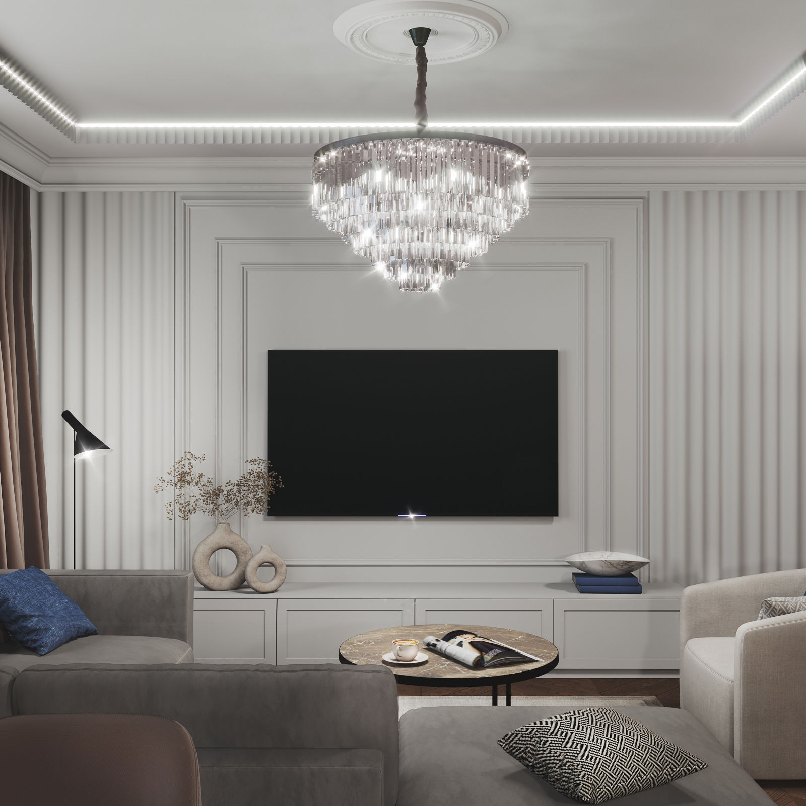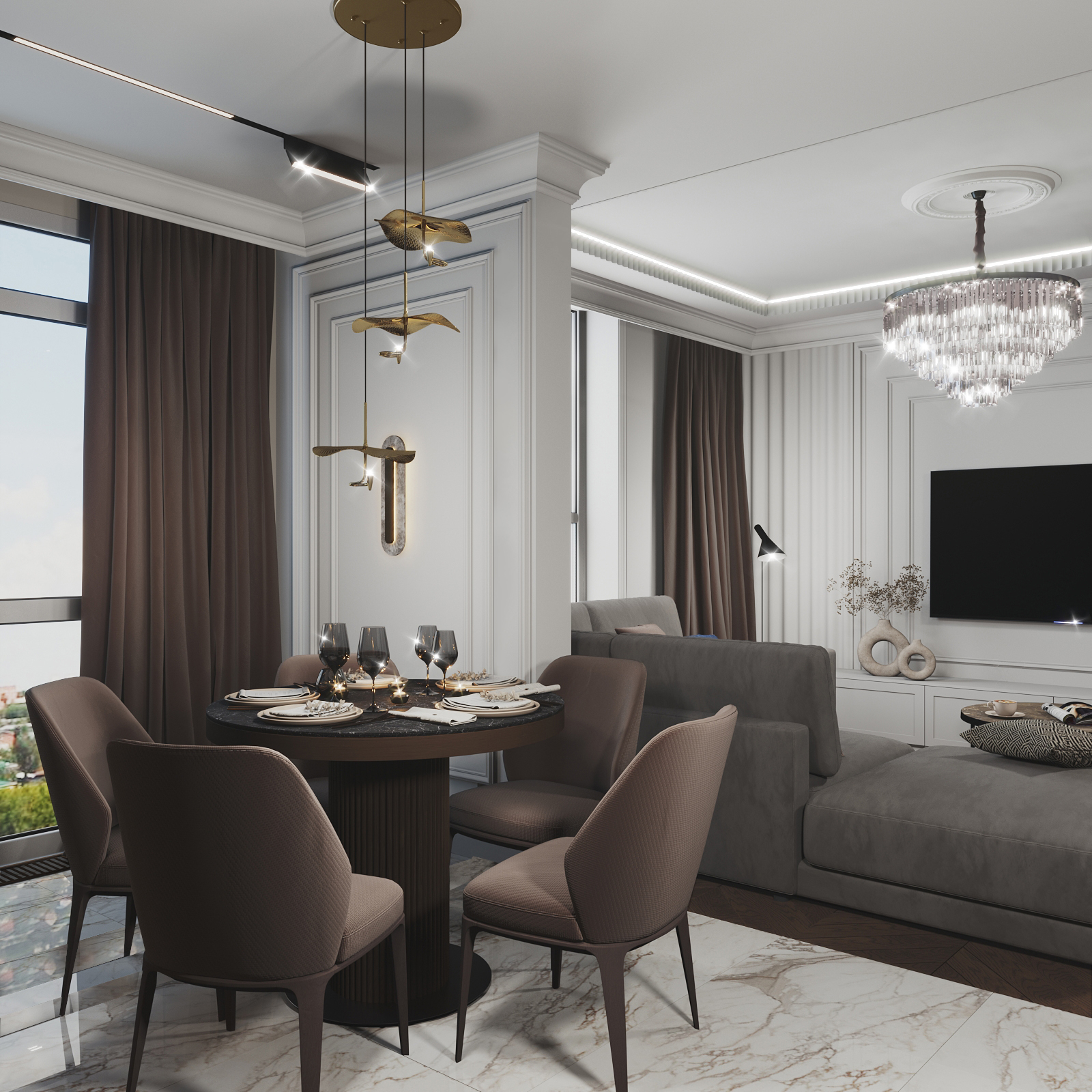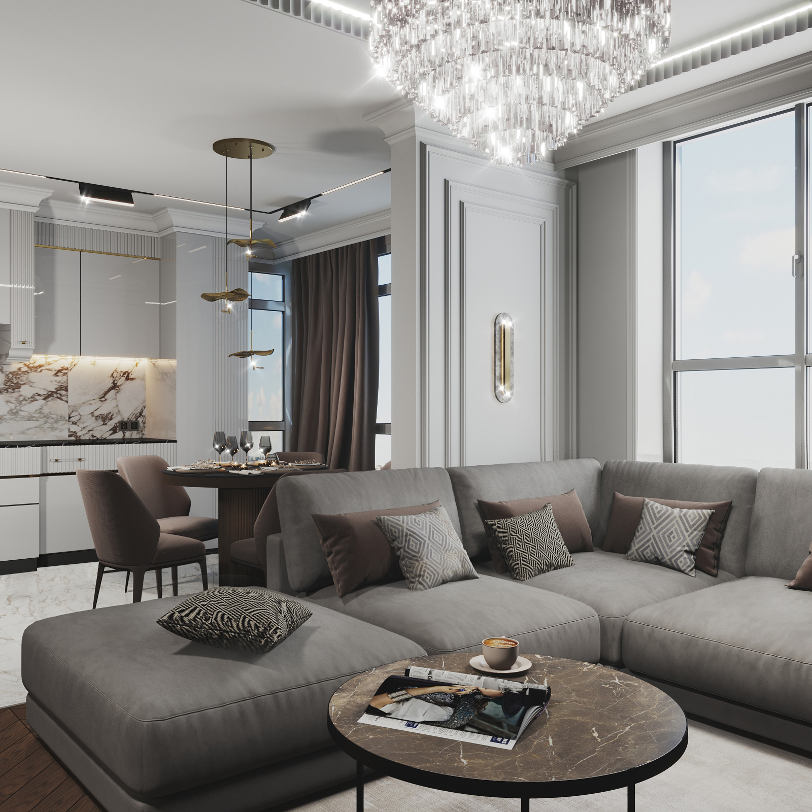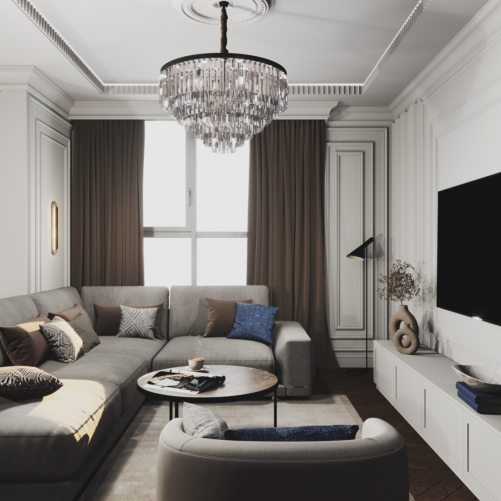 ЖК " Сердце города". Трехкомнатная квартира для семьи в стиле современная классика. Площадь 132м"2, Набережные Челны
